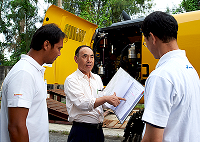 The first mission which I decided after moving to Indonesia was improving distributors’ mindset about the after-sales service which our distributors in ASEAN countries had not taken very seriously. First of all, I started to interview both the after-sales service team and sales team of our distributors in Indonesia, Thailand and Malaysia. I figured out that both teams had related problems; for after-sales service team, “It is difficult to build up trust with customers,” and for sales team, “One of reasons why we cannot sale well is poor service response by after-sales service team.” To be honest, inner miscommunication in the organization seemed to unconsciously give unreliable impression to their customers. Considering claims held by both teams, I found it was necessary to realize closer communication between sales and after-sales teams. To build bridge between them, I actively joined distributors’ meeting and involved all of them for settling problems together one by one. Keeping up with this action, I succeeded to integrate sales force and service force, and they were able to work in close cooperation with each other. As a result, we finally won the trust from customers at the point of both service and product quality. As for Asphalt Paver business which is rapidly growing up in the market these years, we have been providing after-sales service as well. Our after-sales service provides not only proper operating instruction but also “pavement method” cooperating with our reliable distributors. By carrying out our mission for customers, we resulted in drastically decreasing troubles in the actual pavement work as well as machine trouble.